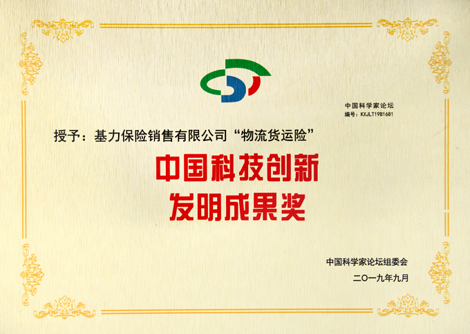 “物流货运险”中国科技创新发明成果奖-证书